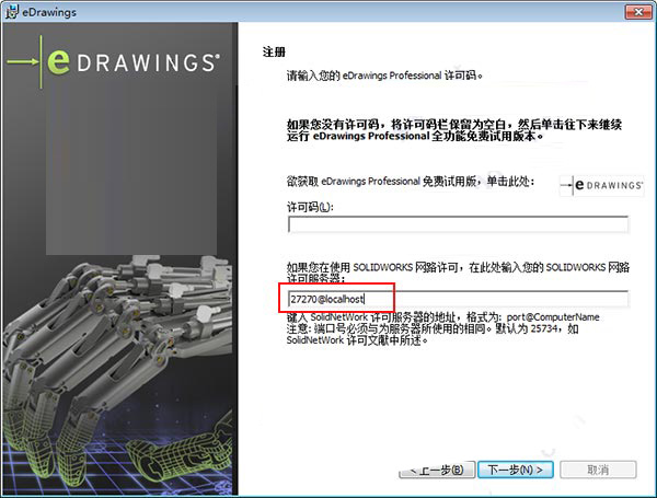 3、輸入網(wǎng)絡許可服務器【27270@localhost】