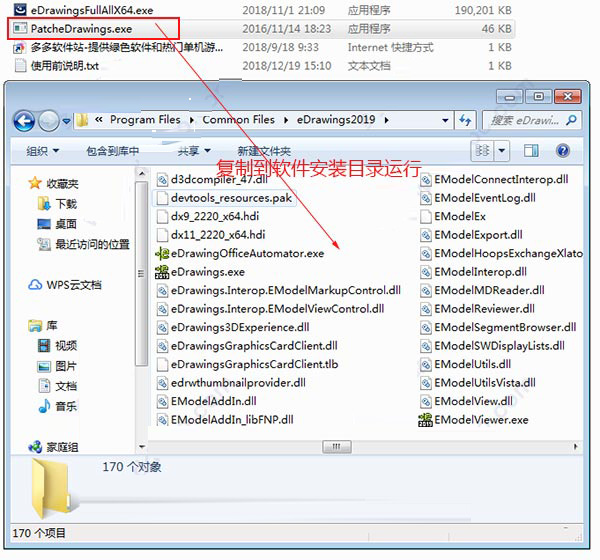 6、接下來對軟件進行破解操作,將補丁文件“PatcheDrawings.exe”復制到軟件安裝目錄下;