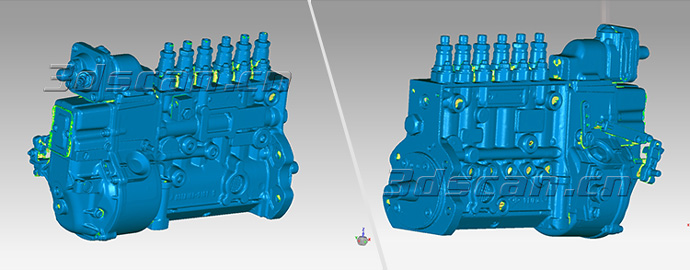 三維掃描儀(HL-3DS)掃描儀速度更快,獲取噴油泵三維數(shù)據(jù)僅需十分鐘,數(shù)據(jù)高精度做到0.02mm。三維掃描儀(HL-3DS)選用外插法多頻相位光柵尺技術(shù)性.編號(hào)點(diǎn)校正技術(shù)性與自動(dòng)式拼湊等技術(shù)性。 將噴油泵數(shù)據(jù)導(dǎo)進(jìn)三維反向手機(jī)軟件(Geomagic)中實(shí)現(xiàn)解決,將解決后的數(shù)據(jù)導(dǎo)進(jìn)Pro/E.UG等流行制圖軟件中,開展汽車發(fā)動(dòng)機(jī)的逆向設(shè)計(jì)。加快新品的開發(fā)設(shè)計(jì),提升汽車發(fā)動(dòng)機(jī)特性。